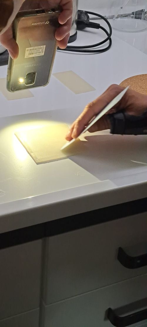 Adhesive Mesh - Workshop zur Anwendung von Klebstoffgittern aus einem Stärkekleister-/Leimgemisch